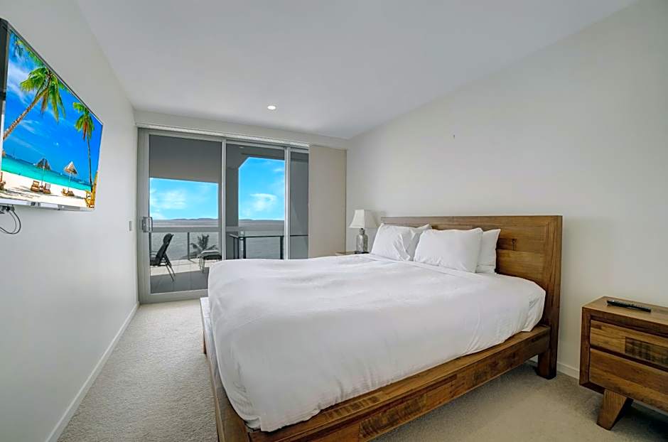 This beachfront apartment offers panoramic views over Rosslyn Bay, Great Keppel Island and Yeppoon City Center. Offering a spacious and open plan design, the apartment also includes a large corner balcony and a fully equipped modern kitchen with marble bench-tops, an oven, microwave, dishwasher and a refrigerator. Both bedrooms have their own bathroom.